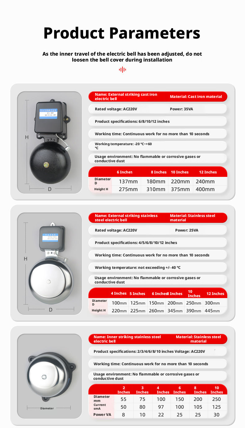 - Thick bell disc, resistant to corrosion and rust, with fine workmanship and various styles.