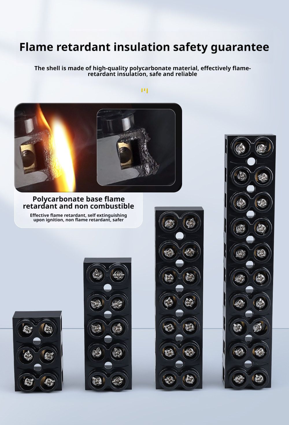 - Polycarbonate flame-retardant base Safety assured