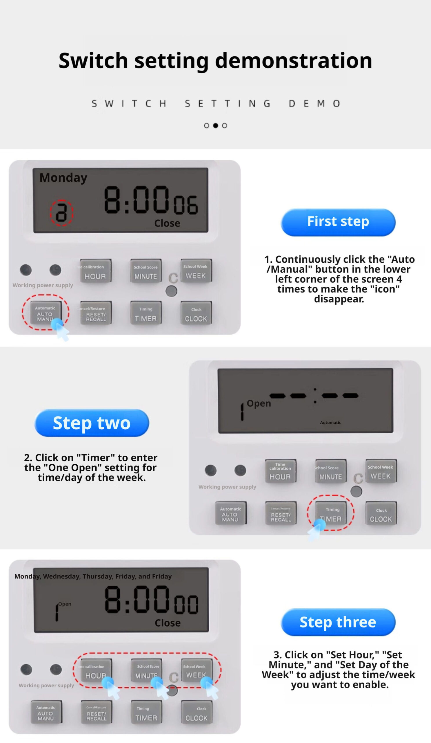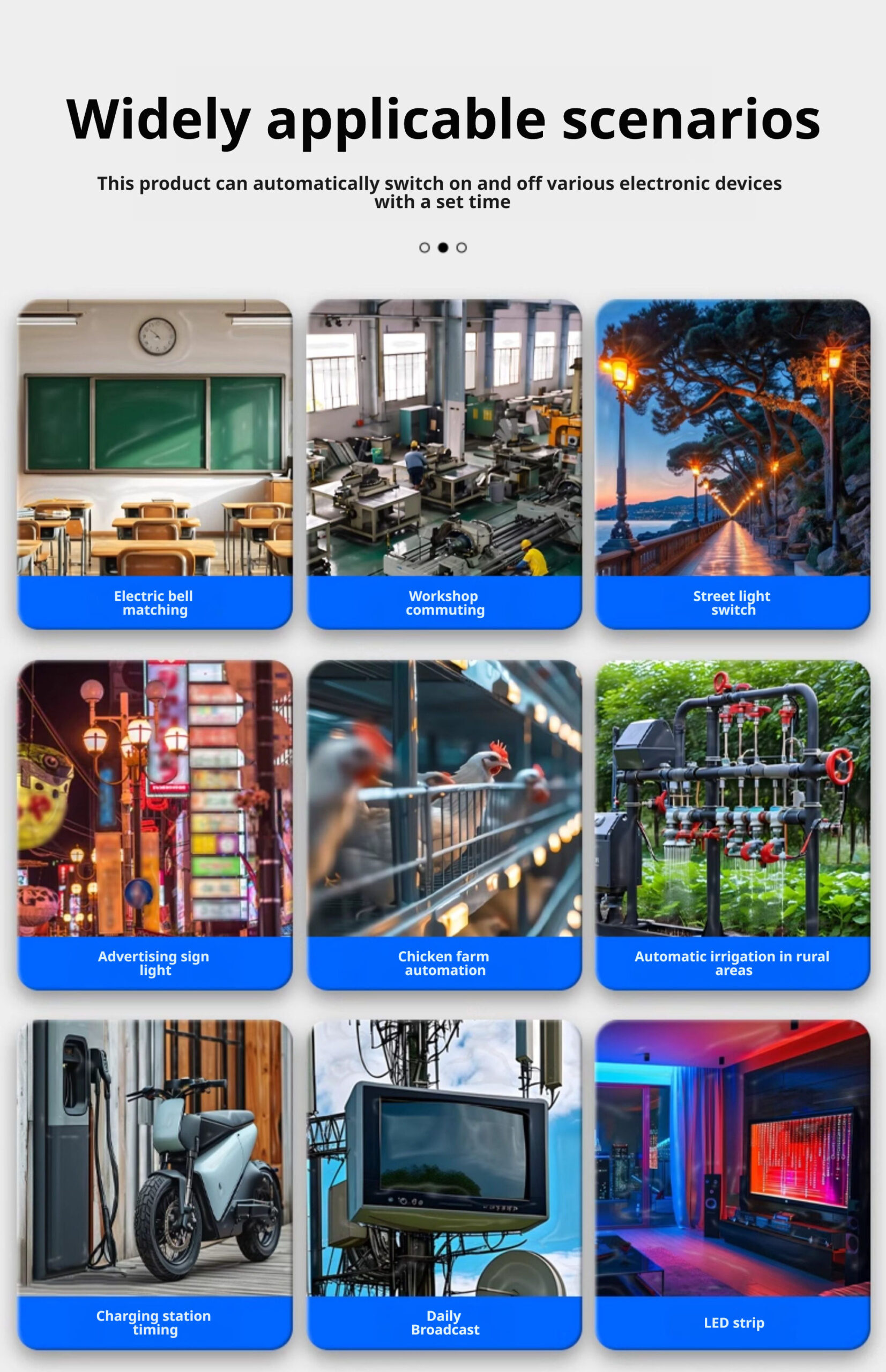 Widely employed in domestic, office and industrial settings, it achieves energy-saving and efficiency-enhancing objectives through its timer-controlled switching and cyclic operation functions.