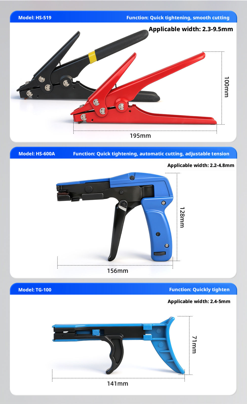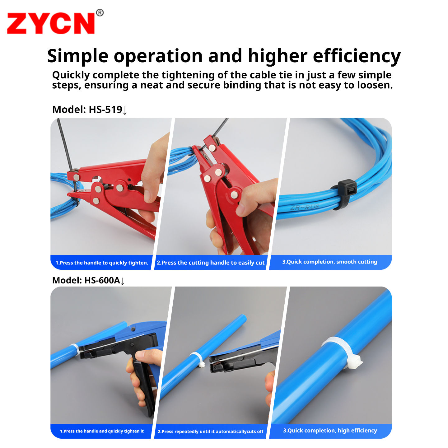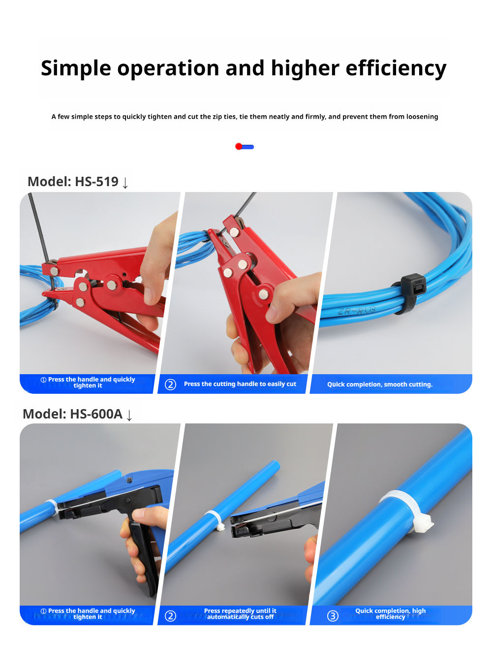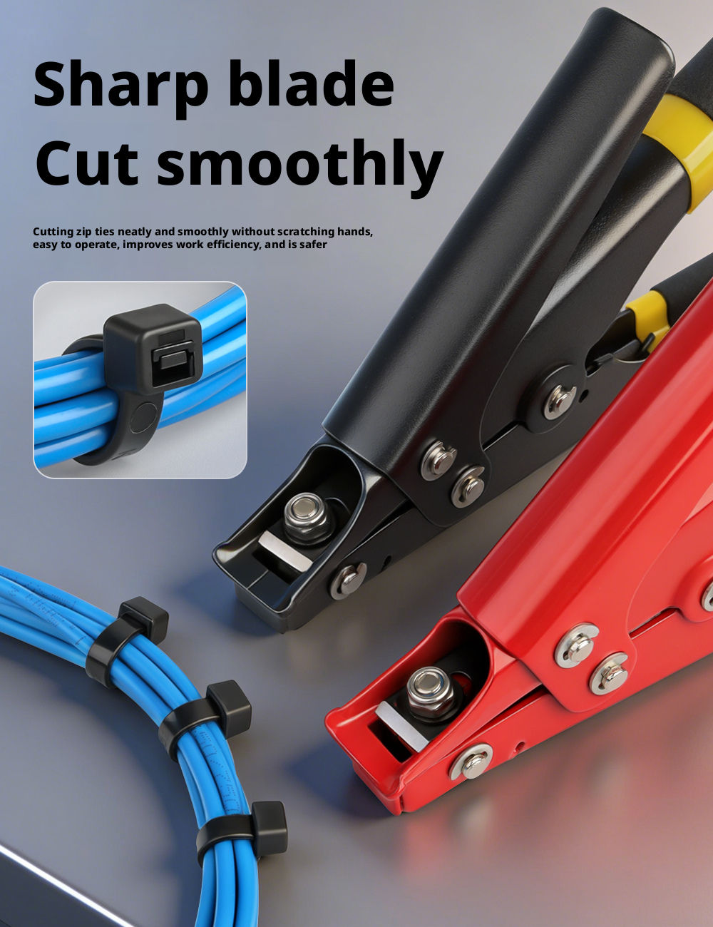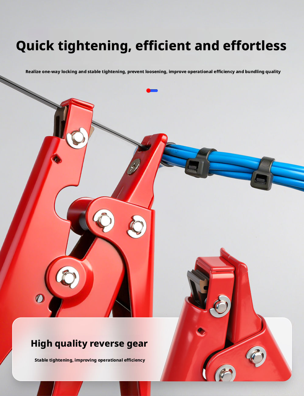 • Tighter pull means less effort, easy to cut with a flat edge, quick and easy to tighten, and easy to cut through.