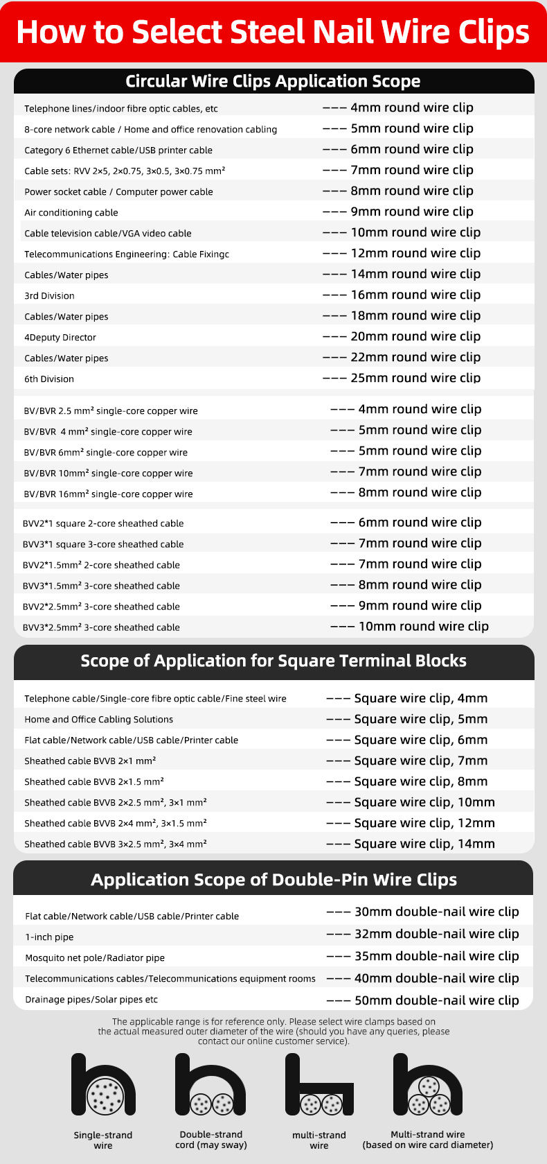 •  Securely fixed; wire diameter conforms