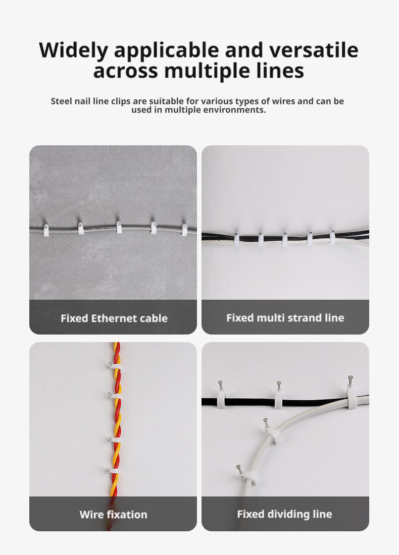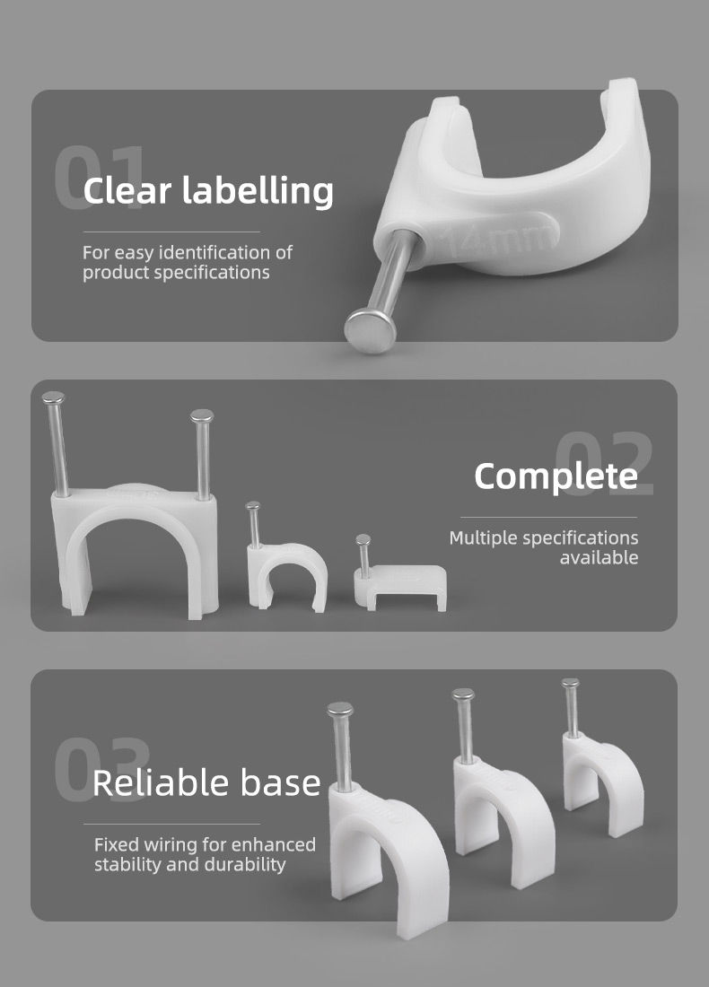 Primarily used for securing and organising telephone lines, indoor fibre optic cables, computer cables, water pipes, and various other types of cables.